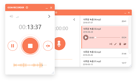 곰녹음기는 PC사운드, 마이크음성, 음성녹음, 오디오녹음 등 컴퓨터의 모든 소리를 녹음하고 간편하게 편집, 파일 변환까지 가능한 무료 컴퓨터 녹음 프로그램입니다.