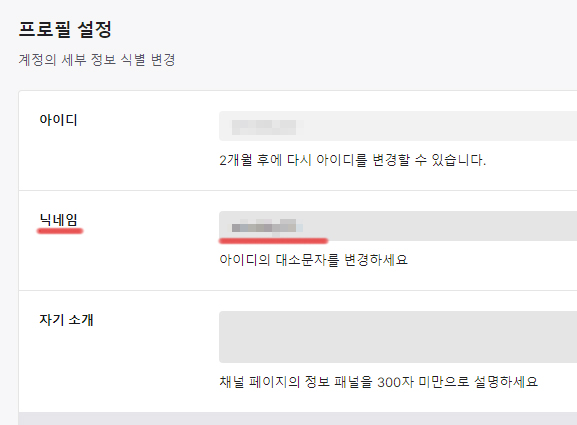 4. 설정에 들어가서 한글 닉네임을 쓰고 저장을 누르면 오류메시지 없이 저장이 된다.